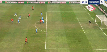 第40分钟,青岛海牛左路传中,前点将球漏过,兰克尔·泽近距离面对王国明,但推射却被王国明神扑挡出。